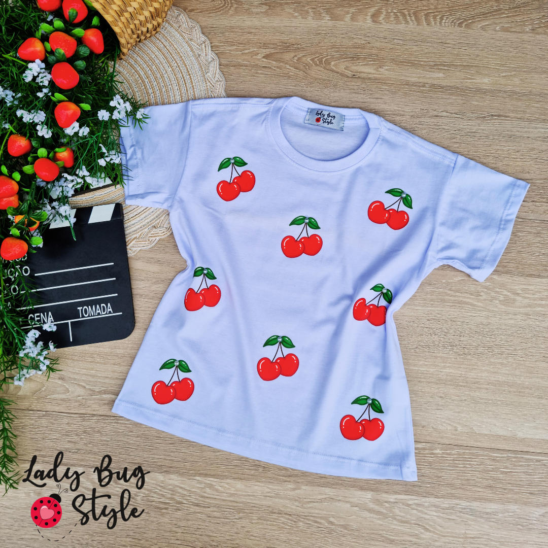 Código: T-SHIRT-CHERRY-PEROLAS-BRANCA Marca: